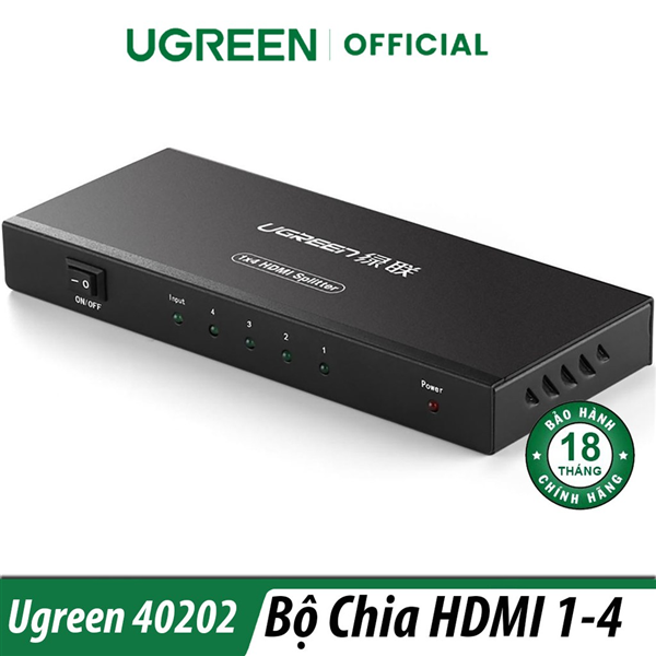 Bộ chia cổng HDMI 1 ra 4 Hỗ trợ full HD, 4K*2K@30Hz Chính hãng Ugreen 40202 Cao cấp