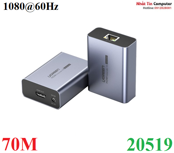 Bộ thiết bị kéo dài HDMI Ugreen 20519 sử dụng cáp Lan để mở rộng tín hiệu HDMI lên 70m ở độ phân giải fullhd 1080p