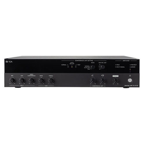 | Đèn hiển thị LED | Nguồn (xanh lá) Tăng âm: INPUT SIGNAL (xanh lá), PEAK (đỏ), PROTECT (đỏ), ERROR (đỏ) Cài đặt thiết bị hội thảo: NORMAL (xanh lá), AUTO MIC OFF (xanh lá), TEST (đỏ |