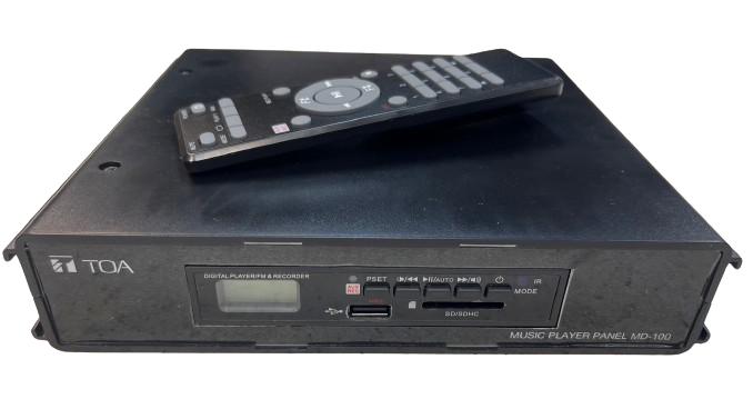 MD-100-AS là đầu phát nhạc nền kết hợp với bộ thu sóng FM. Thiết bị hỗ trợ phát nhạc MP3 từ USB, thẻ nhớ SD và có thể gắn lên tủ rack theo tiêu chuẩn EIA với kích thước là 1U.